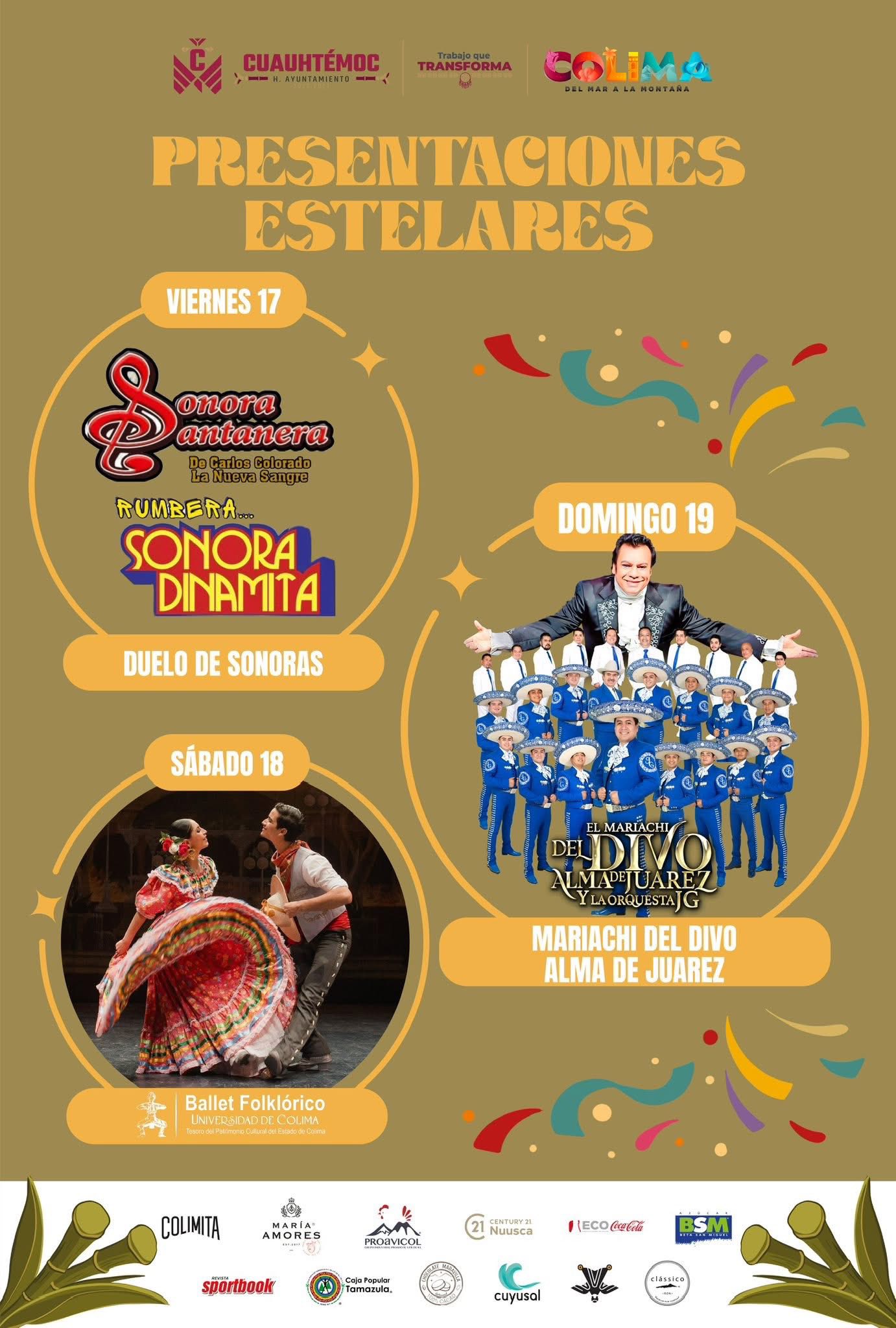 El sábado 18, la tradición mexicana se hará presente con una exhibición charra en la plaza de toros, además de la pasarela “Puntadas de Tradición” del diseñador Víctor Alcaraz, y la presentación del Ballet de la Universidad de Colima, que llenará de ritmo el evento.